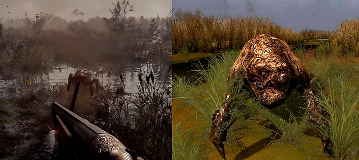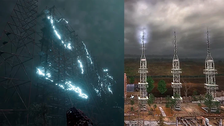 В ролике нам показали уже разрушенную смотровую вышку из “Сталкер: Чистое небо”, которую мы зачищали от “Ренегатов” помогая Лебедеву, главе группировки “Чистое небо”. Во второй части игры вышка уже покосилась, а остров порос бурьяном и камышом.