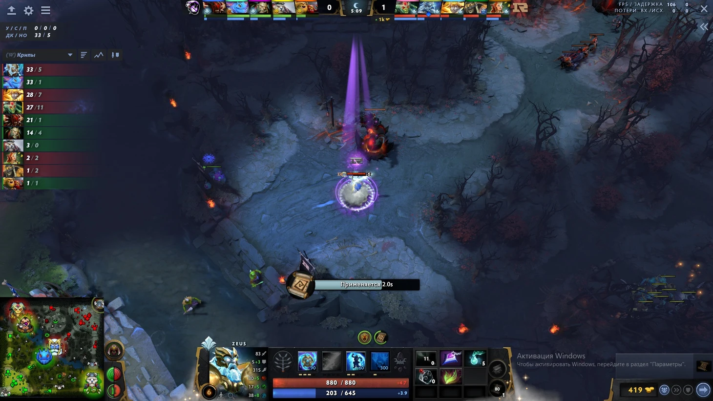 Ой, я сказал 3х2? Кажется, Зевс уже получил 6 уровень. Смотрим на иконку сверху – черт, не хватает маны! Вот как решает эту проблему Somnus丶M: