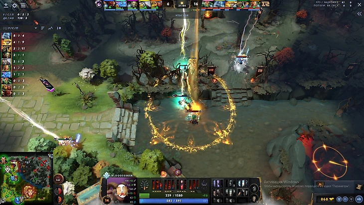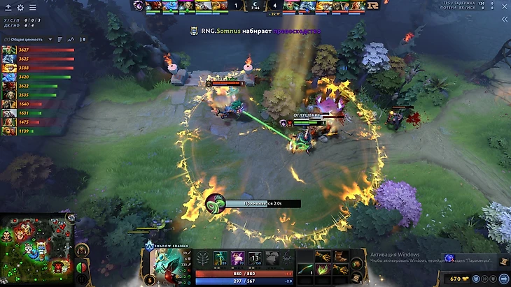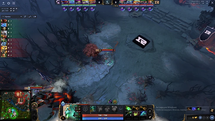 Итоговый размен: Дабл килл от Зевса по Блудсикеру и Огру, со стороны RNG погибла ДБ. Первая реализация связки Dawnbreaker+Shadow Shaman находит себя на 8 минуте: