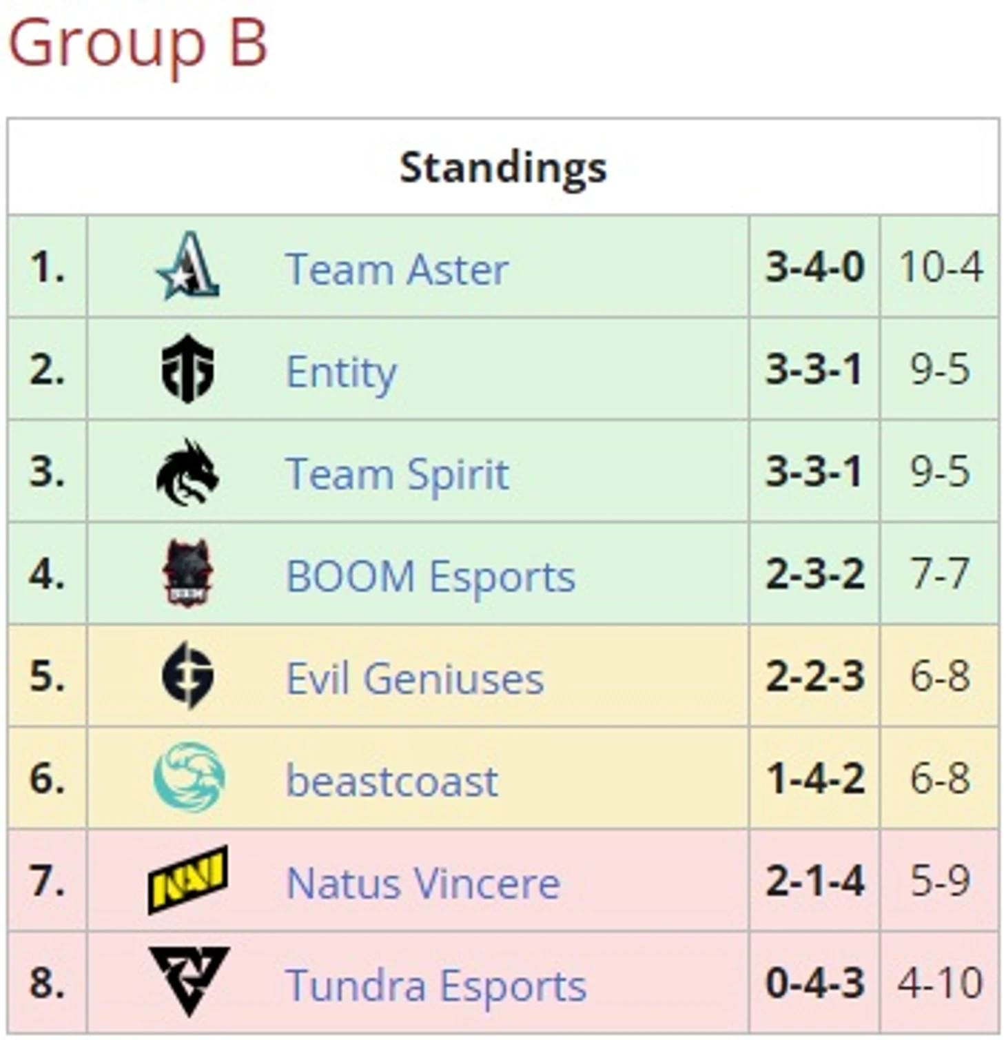 И это просто разнос! Entity заняли 2-е место в группе B! 0-2 уступили только Team Aster.