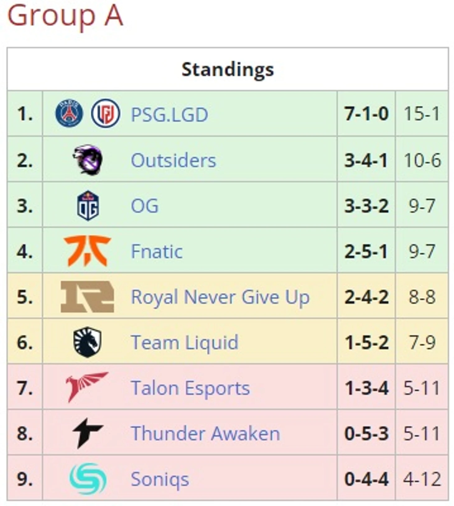 Команду невозможно было воспринимать всерьез перед стартом турнира. Да потому что это и не команда вовсе! Просто микс 3+2 из двух разных команд. Однако этот микс неплохо себя показал: парни вышли в виннера, заняв 4-е место в группе А. Проиграли 0-2 только PSG.LGD. А это незазорно. Soniqs в этой же группе заняла последнее место и с треском вылетела.