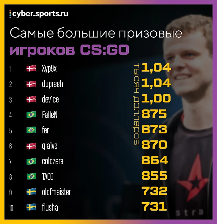 К сожалению, в десятке самых богатых игроков в CS:GO нет ни одного игрока из СНГ. Ближе всего к топу подобрался капитан Na`Vi – Zeus. Он не только заработал более 100 тысяч долларов еще в CS 1.6, но и выигрывал мейджор PGL Krakow вместе c Gambit.