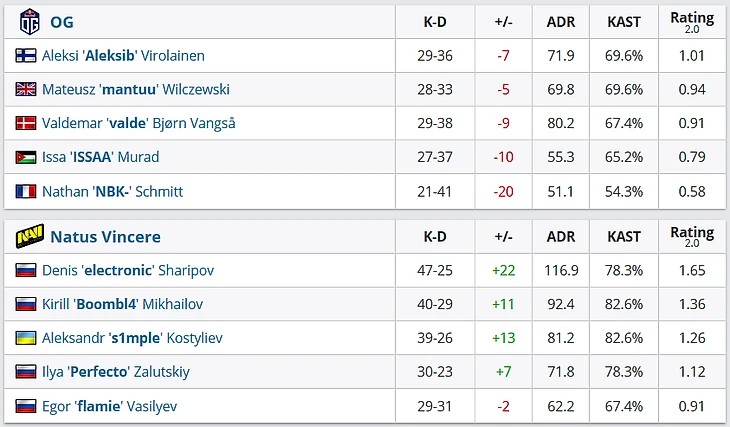Главной силой NAVI уже вторую игру подряд является Electronic, который вчера разваливал Godsent, а сегодня показал еще более выдающееся выступление против OG. Его счет говорит сам за себя.