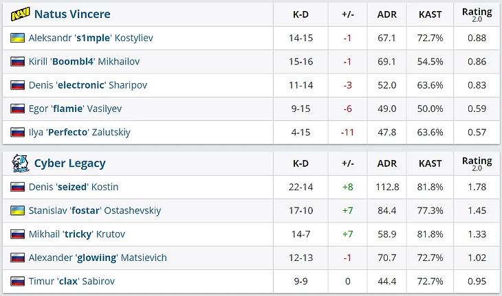 Даже несмотря на победу NAVI, именно Seized стал лучшим игроком матча по рейтингу, количеству фрагов и ADR. Никто даже близко не подобрался к его статистике.