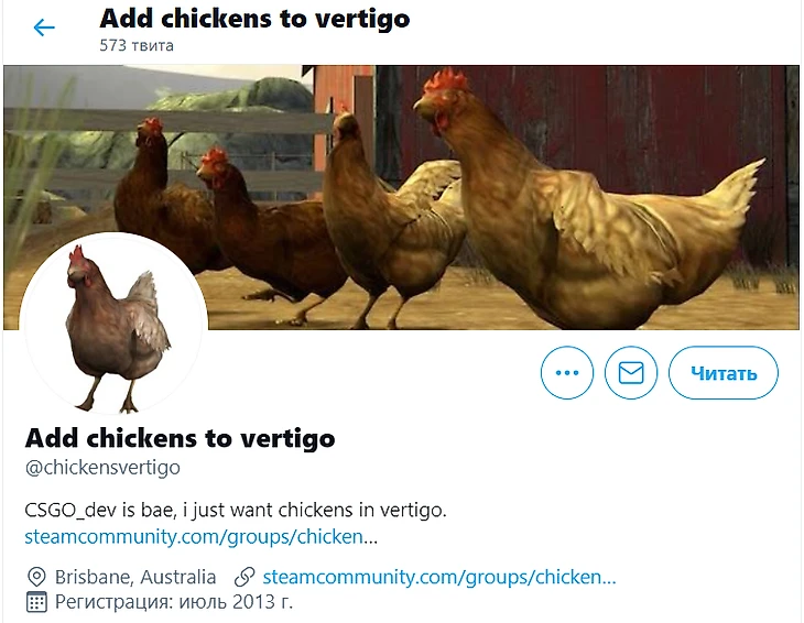 Через некоторое время Valve удалила пост. Скорее всего, разработчики просто поддержали известный мем, который долго форсили фанаты в твиттере. Они просили добавить курочек на Vertigo, и даже создали аккаунт, который писал просьбы под каждым постом CS:GO.
