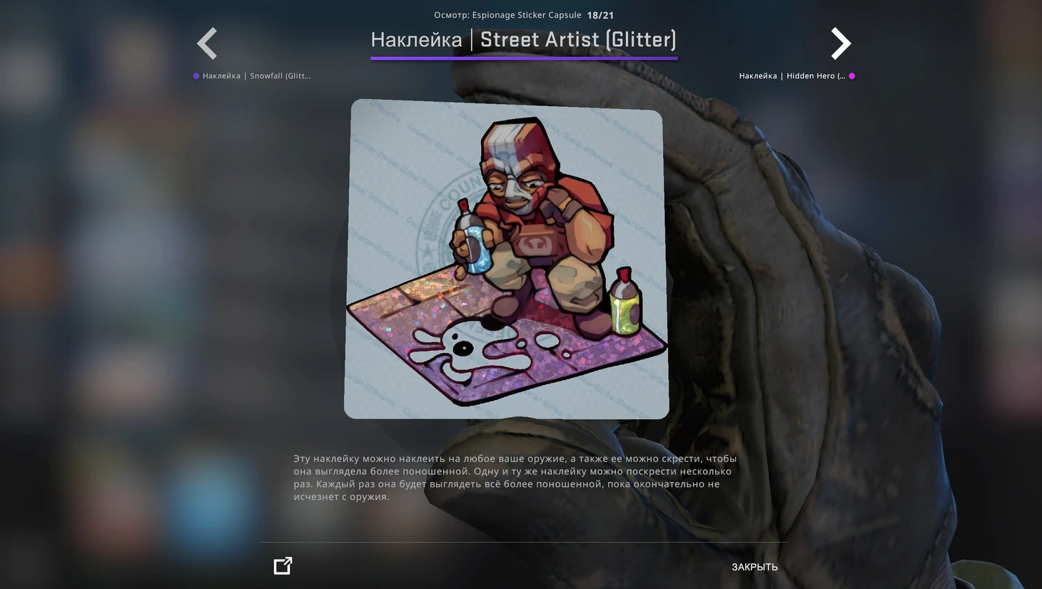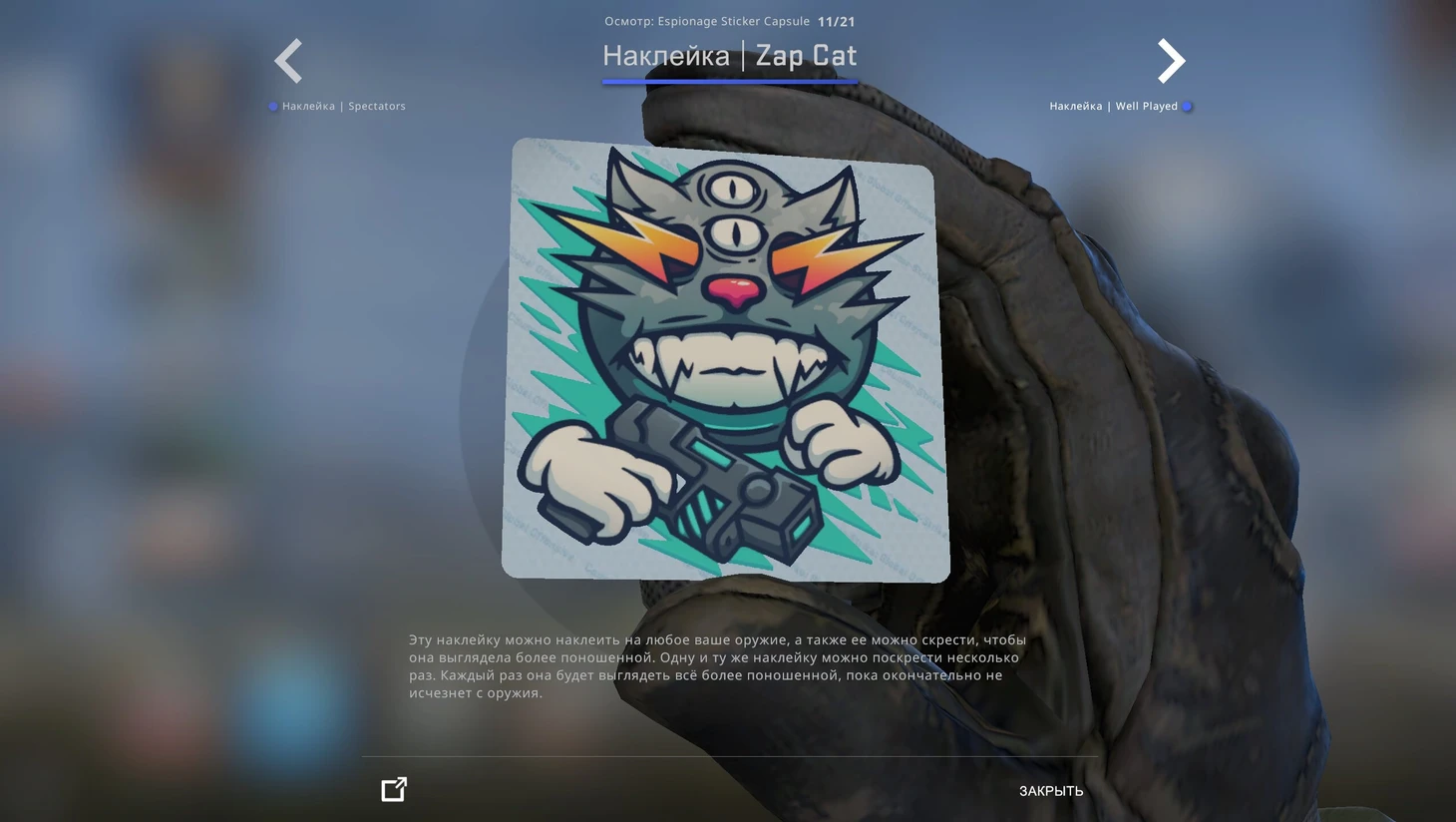 Вместе с новым кейсом и набором музыки Valve добавила в CS:GO капсулу со стикерами «Шпионаж». В наборе 21 наклейка, из которых 3 – голографические, 3 – металлические и 2 – блестящие.
