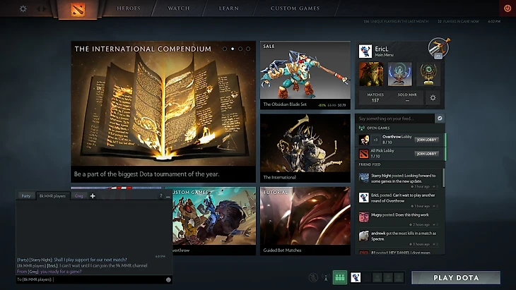 Это был уже состоявшийся, готовый к употреблению продукт. Конечно же иногда он ломался, кряхтел и в в твиттере появлялись твиты с хэштегами #valvepls, но она работала в 97% случаев. Однако мало кто знает, какой она была раньше. Вот вам пример одного из первоначальных интерфейсов игры, когад только запустили Бета-тест после первого TI: