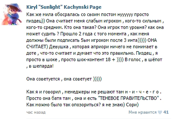 Итак. После каких-то слов, у Кирилла пригорело, и он опубликовал следующий пост в своем паблике: