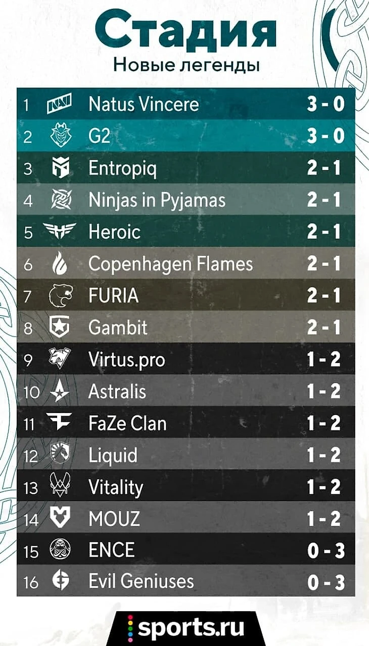 Самый интересный матч дня – поединок Gambit и NIP в 16:45 мск. Топ-2 и топ-4 команды мира решат, кто выйдет в плей-офф, а кто будет играть в последний день группового этапа. У команд есть много крутых игроков – Широ, например, идет на третьем месте в рейтинге Sports.ru (1,27).