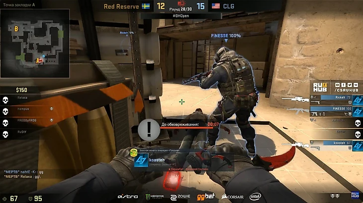 На решающей карте – Мираже – CLG практически выиграла сложнейший раунд при счете 15:13. Они взяли плент и убили всех шведов. Оставалось лишь раздефьюзить бомбу. К ней подбегает Koosta, шведы прописывают GG и выходят с сервера. А она вдруг взрывается. Знаете, кто все эти 10 секунд бегал рядом с Кустой? Правильно! Тиммейт с дефьюзами.