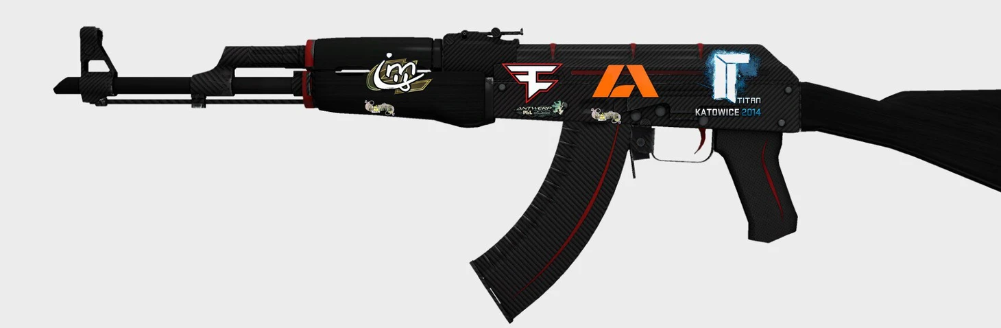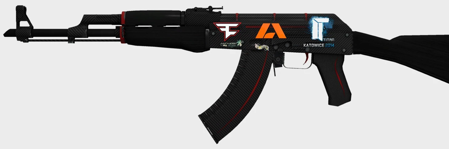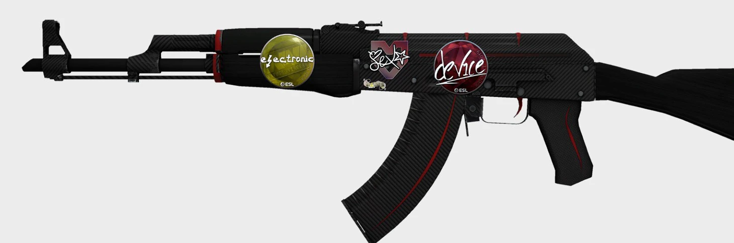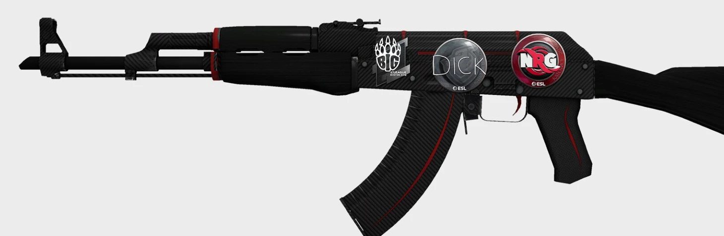 Наклейки команд и игроков давно стали мемами. На логотипах есть уже половина букв алфавита, а в автографах постоянно встречаются интересные слова, с помощью которых можно собирать не самые приличные фразы. Клеить стикеры лучше на однотонные скины, например AK-47 «Черный сланец» или «Красная линия».