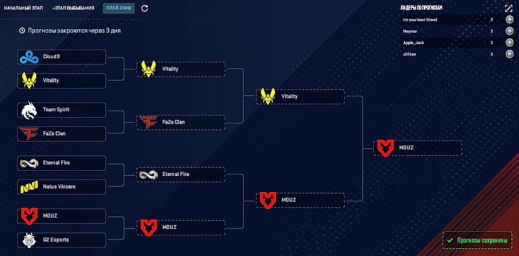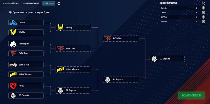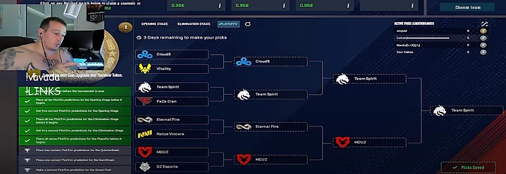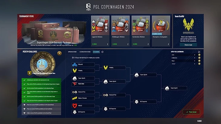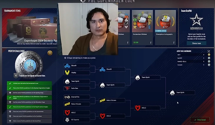 К мейджору Valve обычно выпускает боевой пропуск, в котором всегда есть несколько обязательных заданий – Pick’Em Challenge. Игроки должны предсказать команды, которые пройдут в следующие стадии турнира. За это они получат токены, которые можно обменять на сувенирные коробки с турнира.