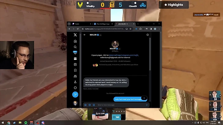 Maj3r играл в CS еще в CS 1.6, раньше него из участников мейджора начал карьеру лишь Фоллен. Но известен он стал лишь после перехода в Space Soldiers в конце 2016 года. А уже в октябре 2021 года игрок перешел в Valorant, без всяких планов вернуться назад. Тогда же он пытался продать свои скины Охнепикселю. «Привет, ты заинтересован в покупке моих скинов? Я ухожу в Valorant, мне нужны деньги, я продаю свои старые скины, с которыми играл на мейджоре», – писал турок в личку коллекционеру в твиттере.