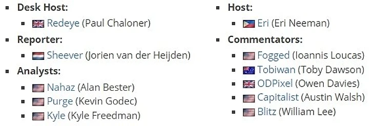В англоязычной студии ESL, как обычно, хороший состав. Компания расторгла контракт с Фейсбуком, по которому все стримы турнира должны были проводиться внутри социальной сети – тогда альтернативные стримеры на твиче часто обгоняли официальную трансляцию и турнир потерял много зрителей. Этот ESL должен стать камбэком.