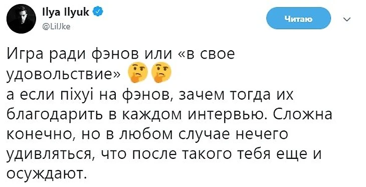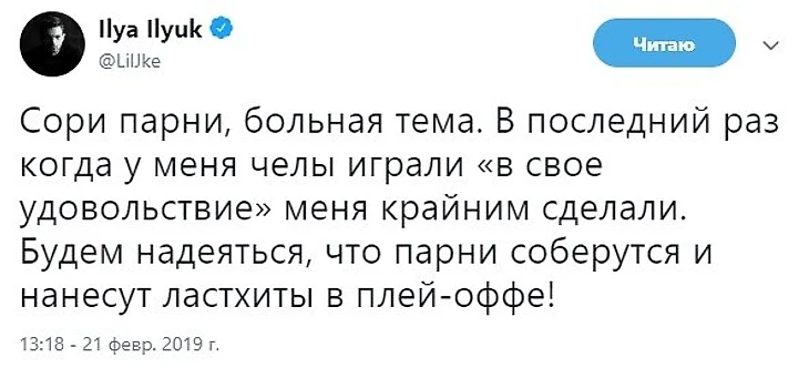 Зрители пришли на стадион посмотреть, кто дорогие билеты покупает, кто на последние деньги берет и покупает, смотрят вот такую игру VP. Ребятки, да нам пофигу. Да и все, поехали. Ни с кем не фоткались, ничего не делали. [...] В интернете такая же критика польется – зачем вы приезжаете на турниры и глаза мозолите? Лучше вообще не играйте. Если вы играете на мейджорах круто – играйте только на мейджорах, в остальных турнирах вообще не участвуйте».