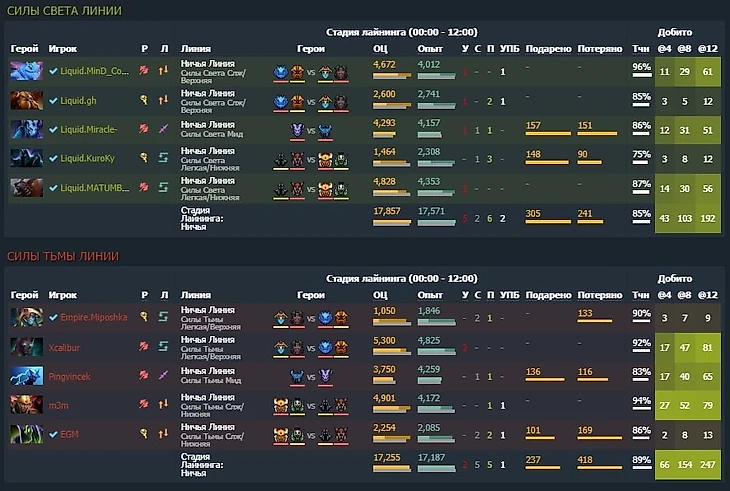 Да, Рики непросто стоять против Разора, но Миракл справился – всего на 9 крипов меньше к 8-й минуте.