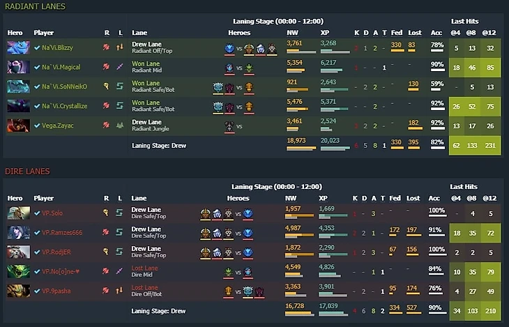 Для Нуна лайнинг закончился ужасно: по золоту он отставал на 1700, а по опыту – на 1800.