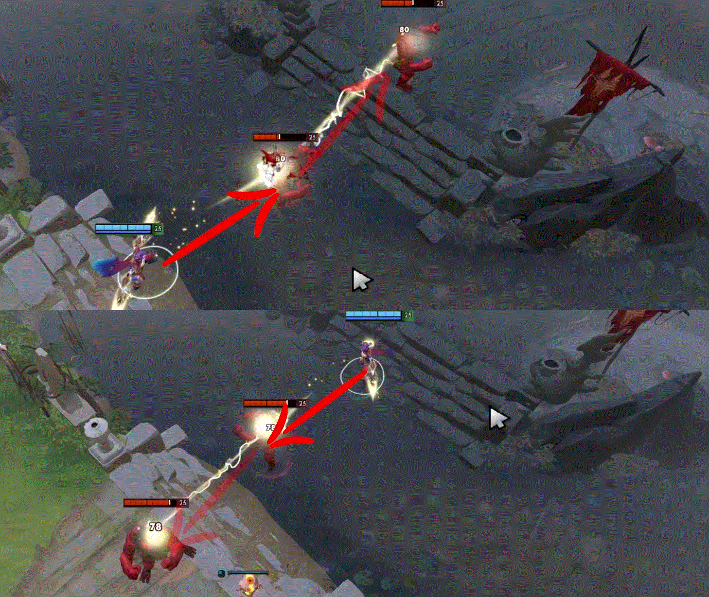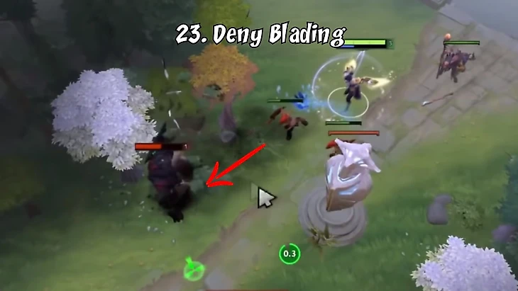 Используйте Meld, чтобы задоджить направленные заклинания. Если вы блинкаетесь на Дизраптора, Crystal Maiden или Shadow Shaman и сразу используете Meld, они скастуют свои скиллы и уйдут от нападения. Поэтому сразу после блинка лучше использовать обычную атаку – затем враг скорее всего попробует применить на вас спелл, но вы должны прожать Meld, сбить анимацию противника, а после добить.