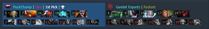 На драфтах Dukalis (капитан команды) не пытается удивлять или запутать. Он берет метовых героев на стандартные линии, он почти не реагирует на драфт врага, не пытаясь никого контрить, он предлагает сделать это оппоненту, как бы говоря «Посмотри, как все просто у меня устроено». Для наглядности, подробно рассмотрим первую карту в серии против Гамбит. С первого взгляда действительно все просто: всего лишь бежит Люкан – возьмем Тайда, всего лишь стоит яйцо – возьмем Мирану, на Тимбера пригодится магия – берем SF.