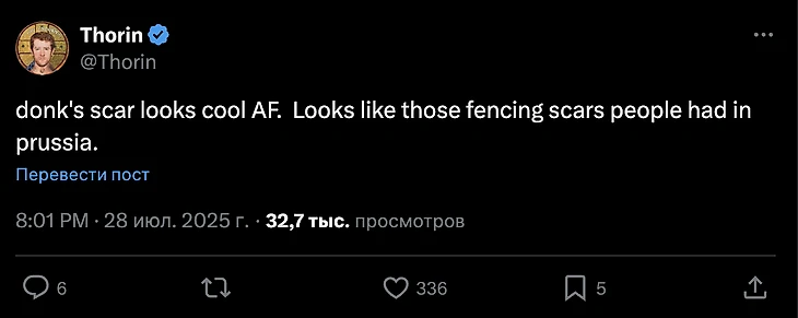 Донк действительно получил Шрам в поединке, однако не в фехтовальном. Подробности раскрыли в выпуске «ВПИСКИ» про Team Spirit.