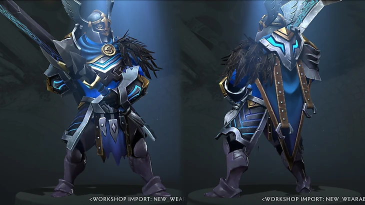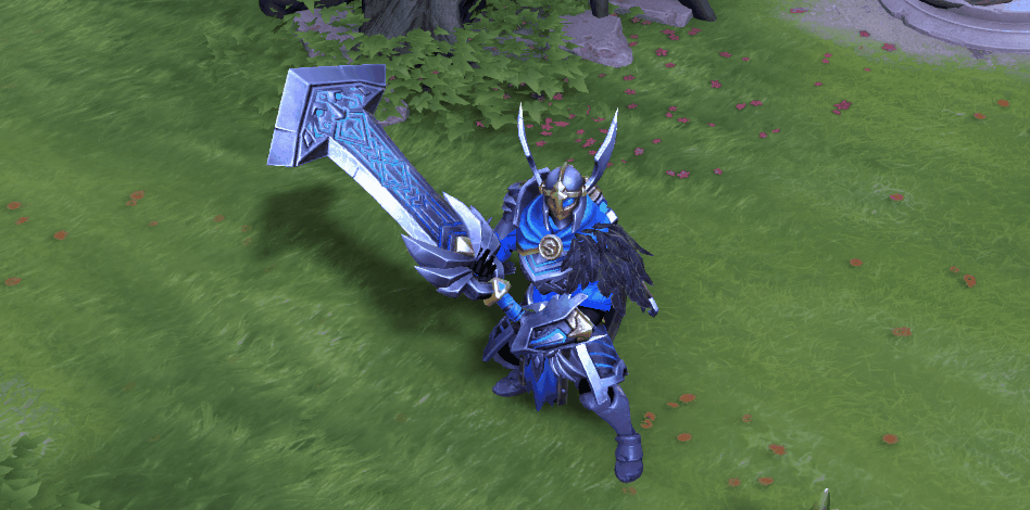 Холодный взгляд, крутой шлем и меч, напоминающий молот по форме: