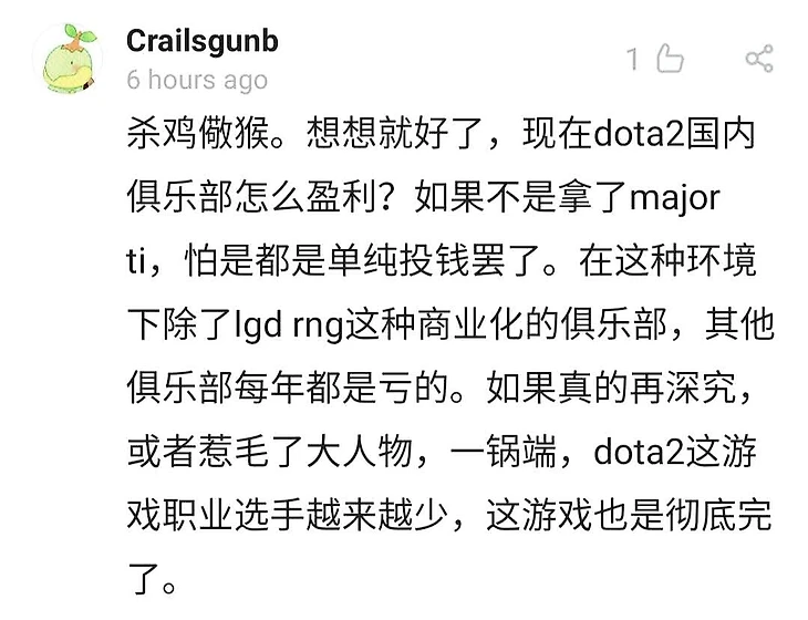 «Предупреждение для остальных. Просто подумайте, как команды зарабатывают? Если нет мейджоров или TI, то и денег нет. В такой обстановке только LGD и RNG имеют прибыль, а остальные теряют деньги каждый год. Если копнуть глубже, в Доте остается все меньше и меньше профессионалов. Игра окончена».