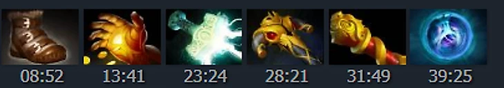 Акцент на скорость атаки, быстрый фарм, эффект молний, который может сработать и от дополнительных атак Time Lock, и BKB, с которым Войда забрать очень и очень трудно.