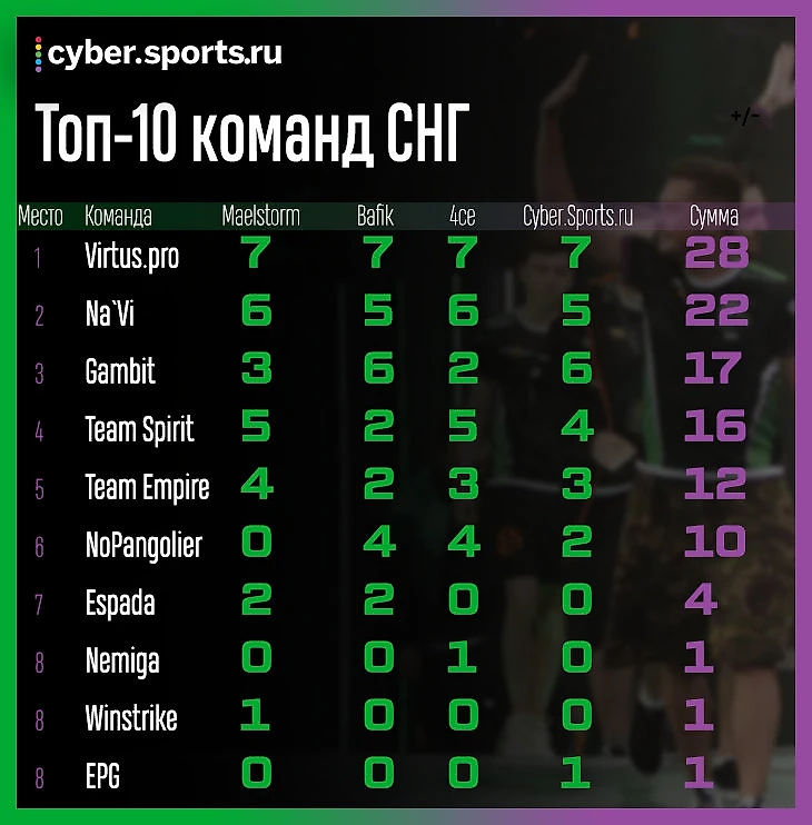 А в каком порядке вы бы расставили топ-10 команд СНГ по Dota 2?