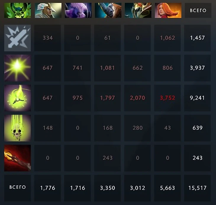 Чувствовалось, что Clinkz – не сигнатурный герой Дани. Он нанес меньше всех урона в команде, даже Magnus превзошел Dendi по этому показателю: