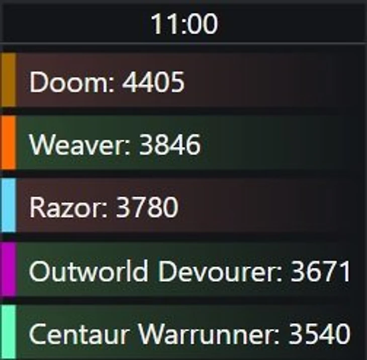 2. Luna. Нужно понимать, что единственный шанс зацепиться за победу на этой карте был сноубол от Дахака – его не случилось. Luna только за счет древних крипов получила на четыре тысячи золота больше, чем Weaver. Мало того, из-за Дума Виверу пришлось собирать Linken` Sphere. И как же долго он шел к этому артефакту. Сравните с фармом Луны: