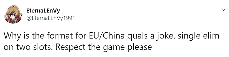 «Квалификации для Китая и Европы должны быть в формате Double Elimination, поскольку они получают 2 слота»