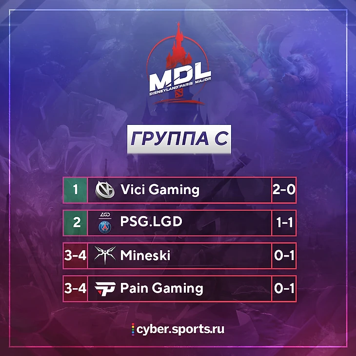 21:30 PSG.LGD 2–0 Mineski. Как и ожидалось, обе китайских команды прошли в верхнюю сетку – разве что победа Vici над LGD могла кого-то удивить. Именно Mineski завтра будут играть в матче навылет с Empire.