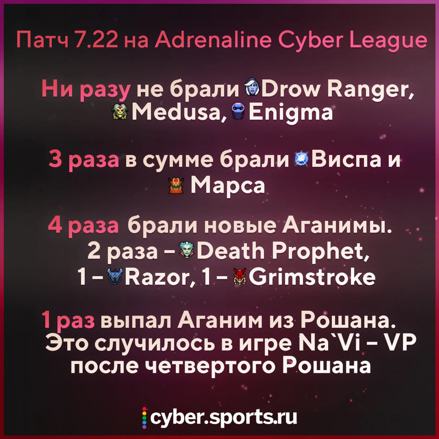 Патч 7.22 на Adrenaline Cyber League одной картинкой