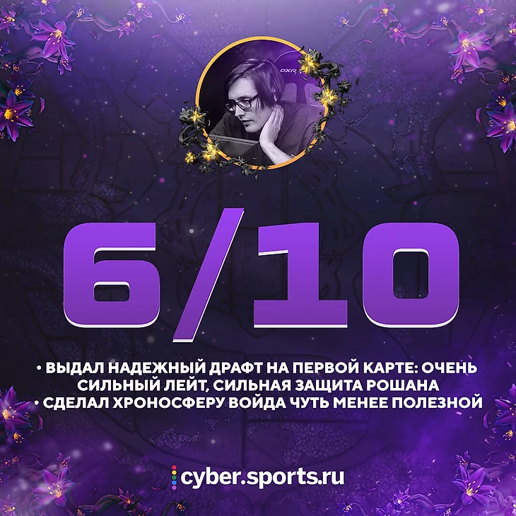 Monet идеально таймил Хроносферы и работал по Гирокоптеру. Если в той игре титул MVP мы смело отдали Ланэму, то здесь Monet вне конкуренции. И дело не только в том, как он виртуозно обращается с Time Walk: по сути, он сделал из Войда Вивера, только гораздо более сильного.