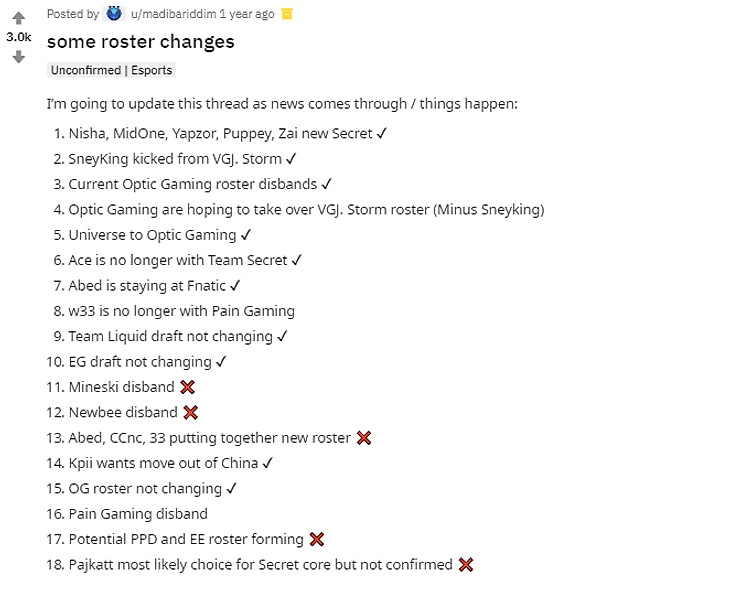 Неделя после The Internatiional – время, когда инсайды о заменах летят быстрее, чем сообщения в чате Твича. Sports.ru собирал всю информацию о трансферах в одном месте, чтобы вам было удобнее следить за хаосом под названием «Решаффлы после TI».