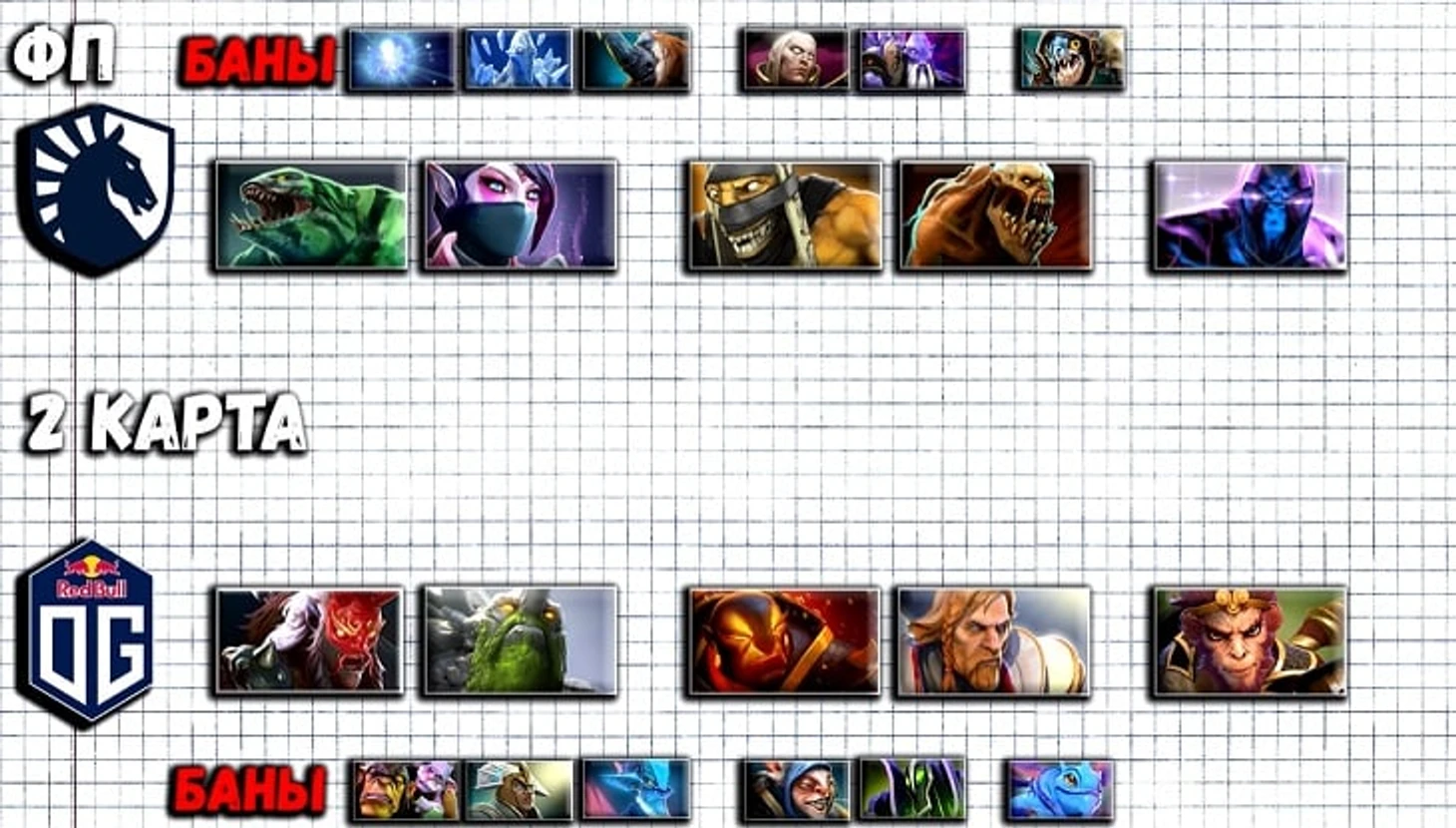 Liquid банит сигнатурки OG, пока OG банит героев, которые могут помешать их задумке в целом, несмотря на пул игроков Liquid.