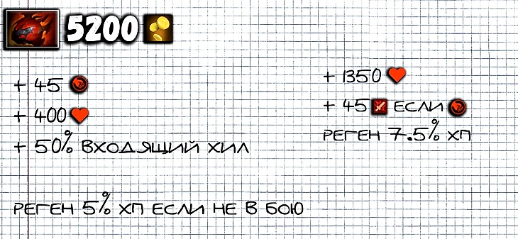 Артефакт не улучшается со временем. 1350 здоровья на 20-й и 40-й минуте – два совершенно разных величины по важности и силе в бою. Сравним с Кирасой: