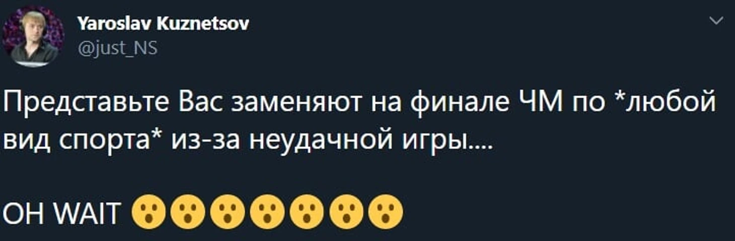 Правда, NS тут же справедливо заметил, что это нормальная практика для многих командных видов спорта. Кажется, Ярослав одной фразой перекрыл довод Себа.