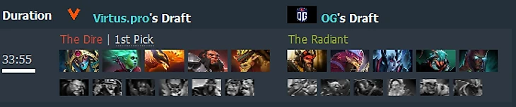 Несмотря на то, что в первой стадии драфта OG забрали героев третьей и четвертой позиции, VP все равно забанила Энигму пятым баном.