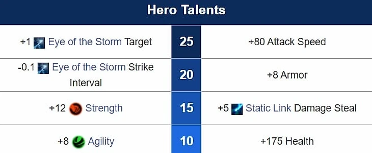175 здоровья на десятом, 12 силы на пятнадцатом. Не делайте из себя керри, вам не нужна ловкость и, в большинстве случаев, сосать 300 урона тоже не нужно. Да, можно усилить Static Link против очевидных контрпиков (Тролль, Свен, Найкс), но это исключение из правила.