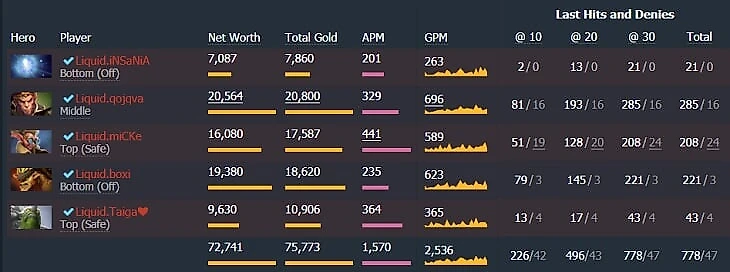 Причина – они снова поменялись позициями. Micke, хоть и фармил на легкой, конечно же, был позицией №3. Первой позицией был... оффлейнер Boxi. Именно он выфармливал стаки, сделанные Виспом и Тайгой.