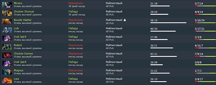 За этот месяц я забыл, что такое отдых в Доте. К каждому матчу я готовился, а в рабочее время, во время матчей DPC-лиги, специально отслеживал игру четверок (Кирилл Новокщенов, не читай эту строчку). У меня большая насмотренность матчей топ-уровня и уверенное знание матч-апов. И все это не помогло сохранить себе 50% побед.