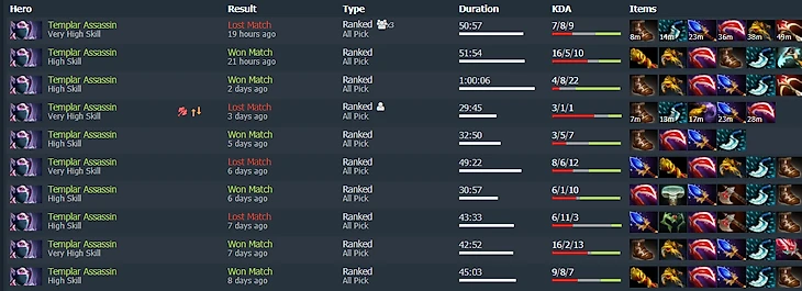 Месяц на аккаунте с Титаном вызвал у меня тоску по «Четырем репортам», поэтому новый выпуск я готовил дольше и усерднее обычного. Я давно интересовался Аганимом Templar Assassin, но протестировать я его решил на третьей позиции, где умение занимать зоны опасного фарма ценится выше.