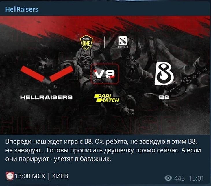 Хотя Hellraisers часто ходят по чрезвычайно тонкому льду. Вот так анонсировали очную встречу с B8 в рамках DPC: