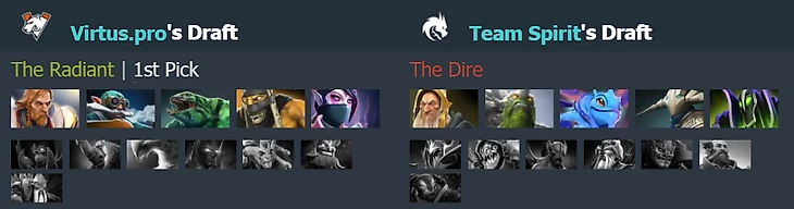 Во-первых, надо сразу сказать, что обе команды успели посмотреть и мету пабликов, и игры Китая. VP взяли у Китая Омнинайта первым пиком, Spirit – кор-Котла.