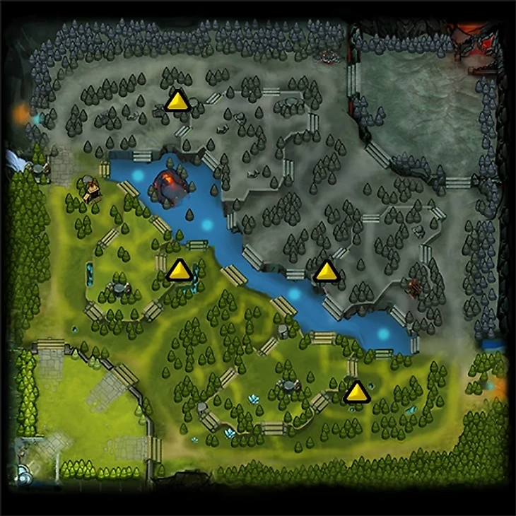 Что еще нужно знать о лесных крипах: их можно стакать. Раз в минуту игра проверяет, есть ли в лагере крипы и, если нет, создает новых. Фокус в том, что можно спровоцировать крипов: атаковать их на 53-й секунде игры и отходить. К отметке ХХ:00 монстры выйдут за пределы лагеря, а игра подумает, что надо создать новых – так появится двойной лагерь крипов.