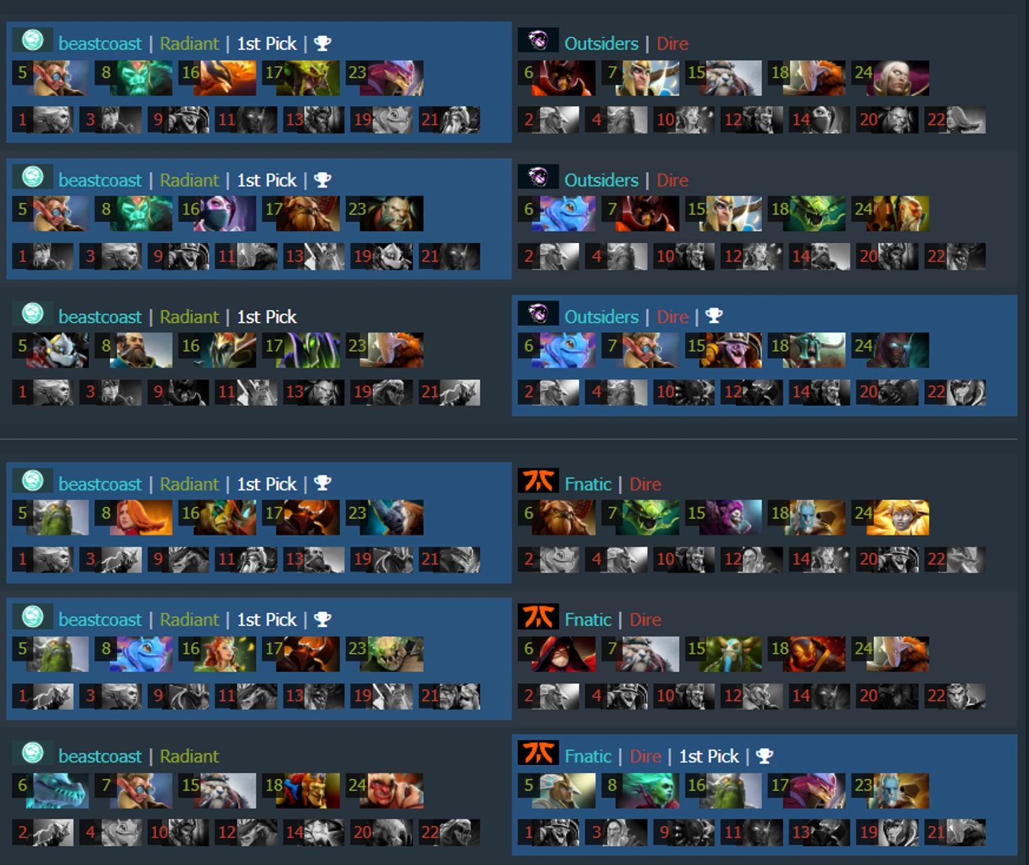 До топ-6 мейджора Beastcoast добралась без единой карты за Dire, а единственный матч за Тьму проиграла.