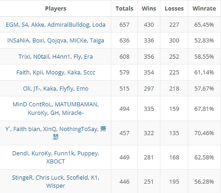 Состав Liquid-Alliance с Тайгой занимает второе место в истории по количеству сыгранных вместе карт. Они обогнали и NAVI-2013, и Liquid-2017, и PSG.LGD с Beastcoast.