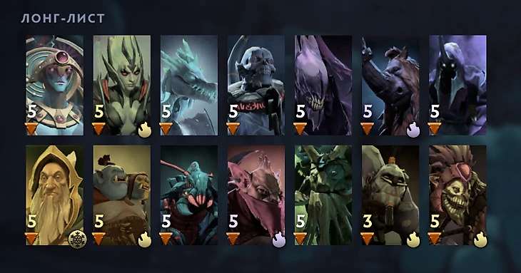 Обычно это список из 10-12 героев, подходящих по двум первым критериям. У меня он выглядел бы так: