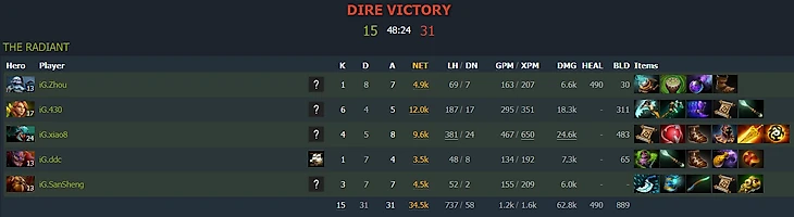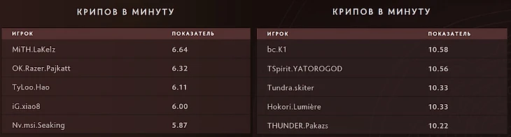 Да и основная суть пункта была не в том, чтобы подчеркнуть низкий уровень игры, а передать мету турнира. Тогда действительно фармили 50 минут, но если бы я не дал контекст про гпм и крипов, можно было бы подумать, что все дрались на шести слотах (у саппортов дай бог 2,5 было)